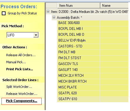 1. Open the WorkOrder WO and click on “Pick Components” and the status of the item will change to PICKED.